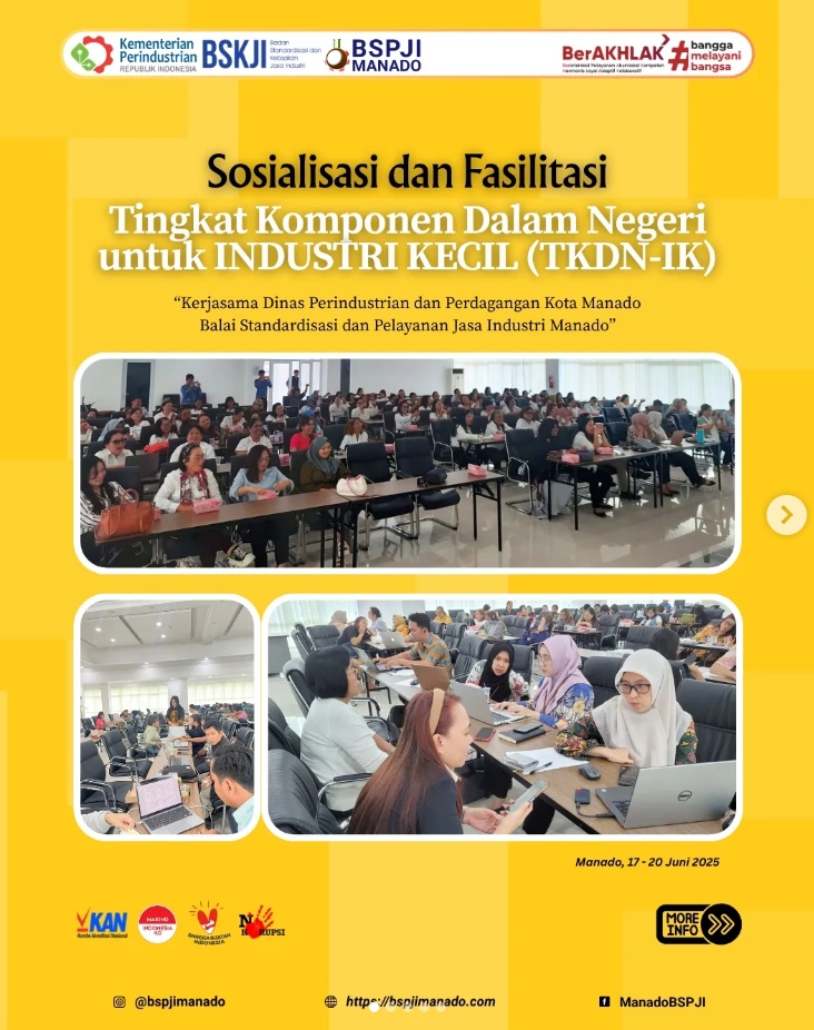 BSPJI Manado bersama Dinas Perindustrian dan Perdagangan Kota Manado telah sukses menyelenggarakan Sosialisasi dan Fasilitasi Tingkat Komponen Dalam Negeri untuk Industri Kecil (TKDN-IK) pada 17–20 Juni…